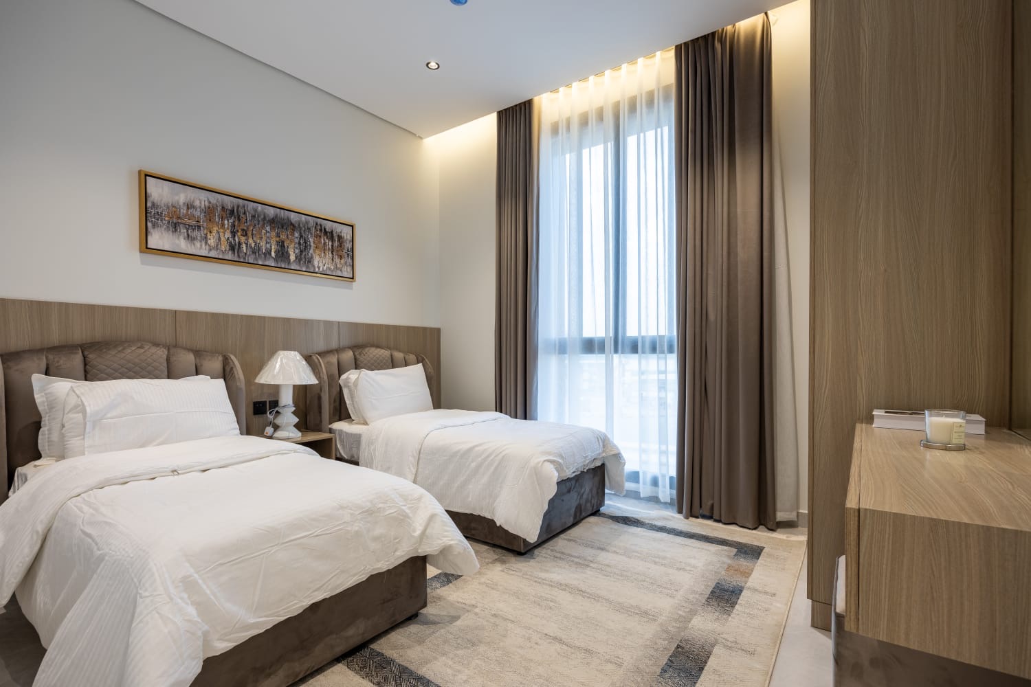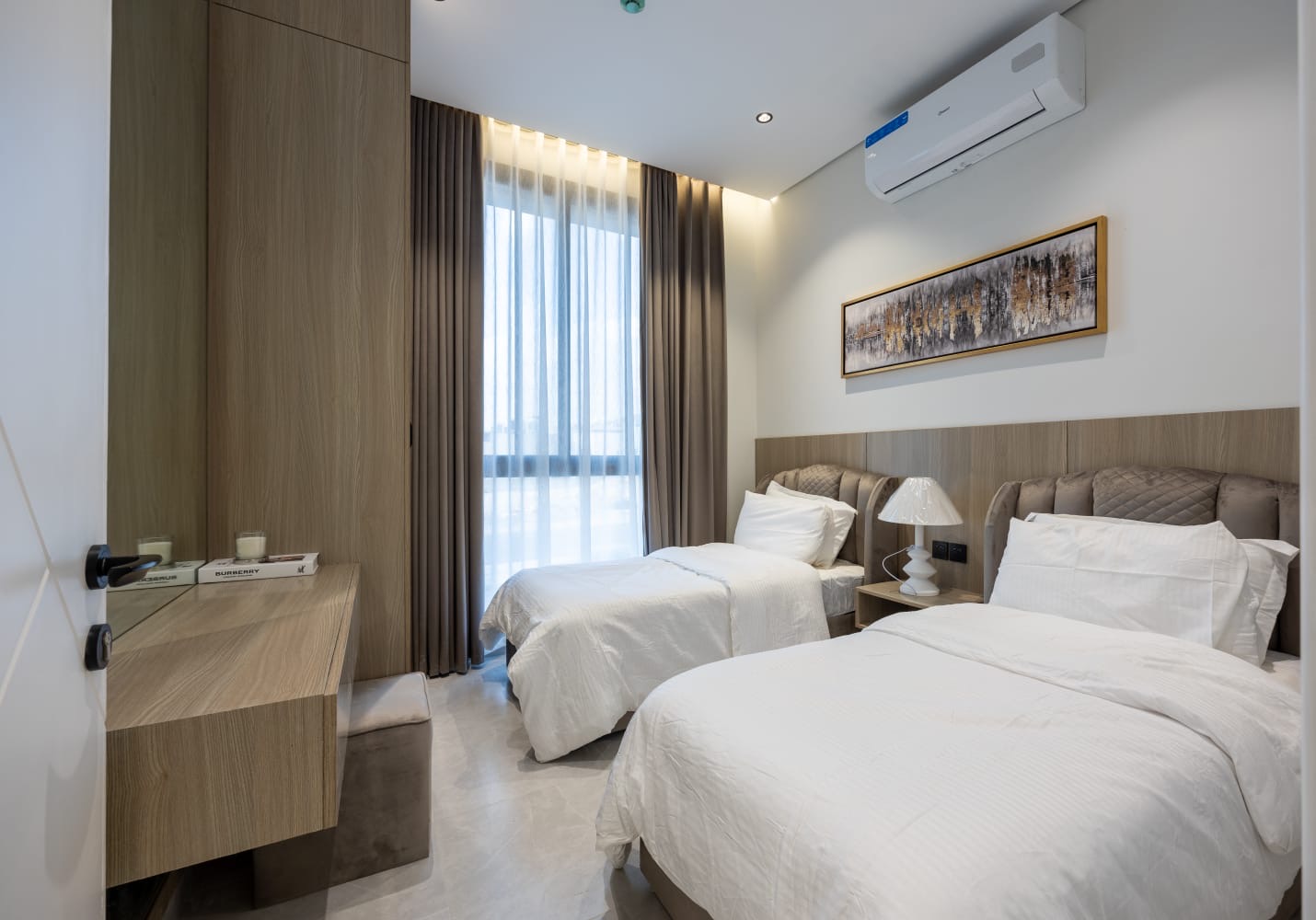 - غرفتين نوم ماستر (إحداهما مطلة على تراس خاص)